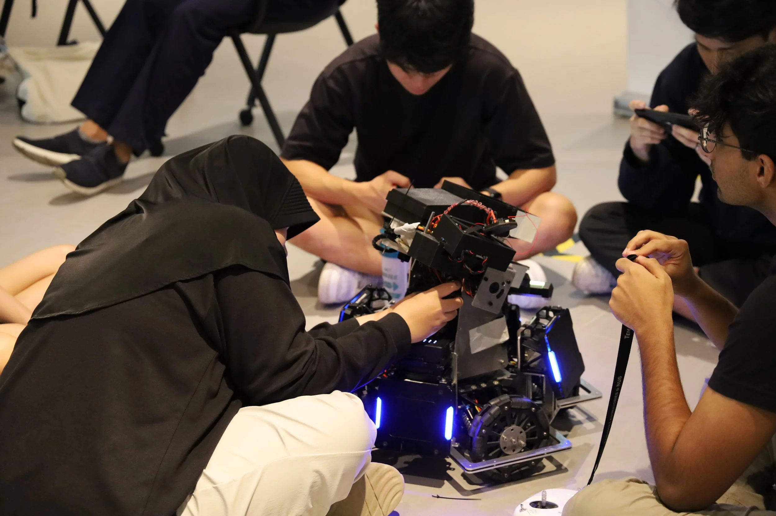 DarkNUS Teams spent the entire semester training together and constructing custom robots from scratch. They showcased their engineering and programming progress within a simulated RoboMaster environment. The event tested their technical capabilities and strategic teamwork under high-pressure, realistic competition conditions. This pushed the members to apply their design, control, and coordination skills in time-sensitive scenarios. Successfully completing the event marked the official advancement of participants into the DarkNUS main teams. This validation acknowledged both their individual growth and collective readiness. Now, DarkNUS members will apply their experience and training to upcoming official RoboMaster competitions alongside the Main Teams. They will bring refined tactics and hardened systems to the season ahead.