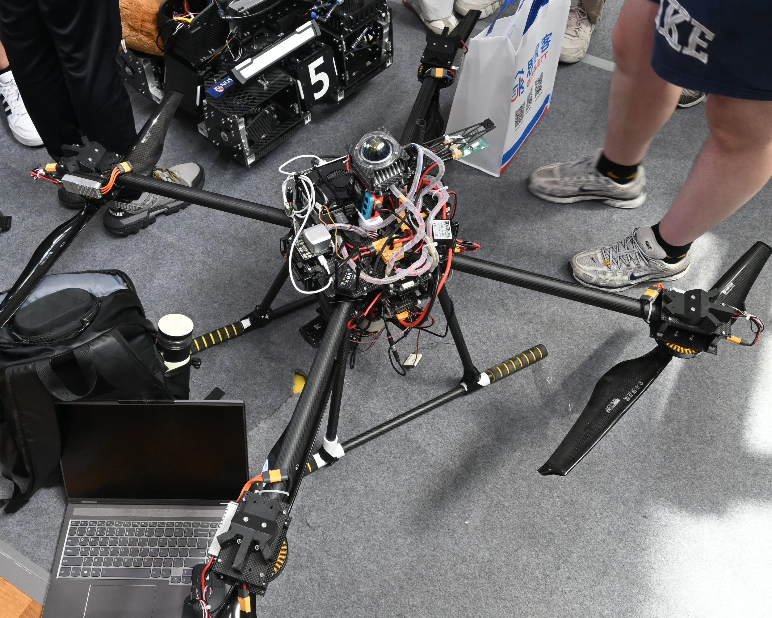 The Aerial is an autonomous aerial robot designed for high-mobility vertical operation. Operating within the airspace, it utilizes a projectile-launching system capable of controlled, sustained 17 mm projectile fire via a Gatling system, enabling strategic aerial dominance and enhanced combat effectiveness in competitive scenarios.